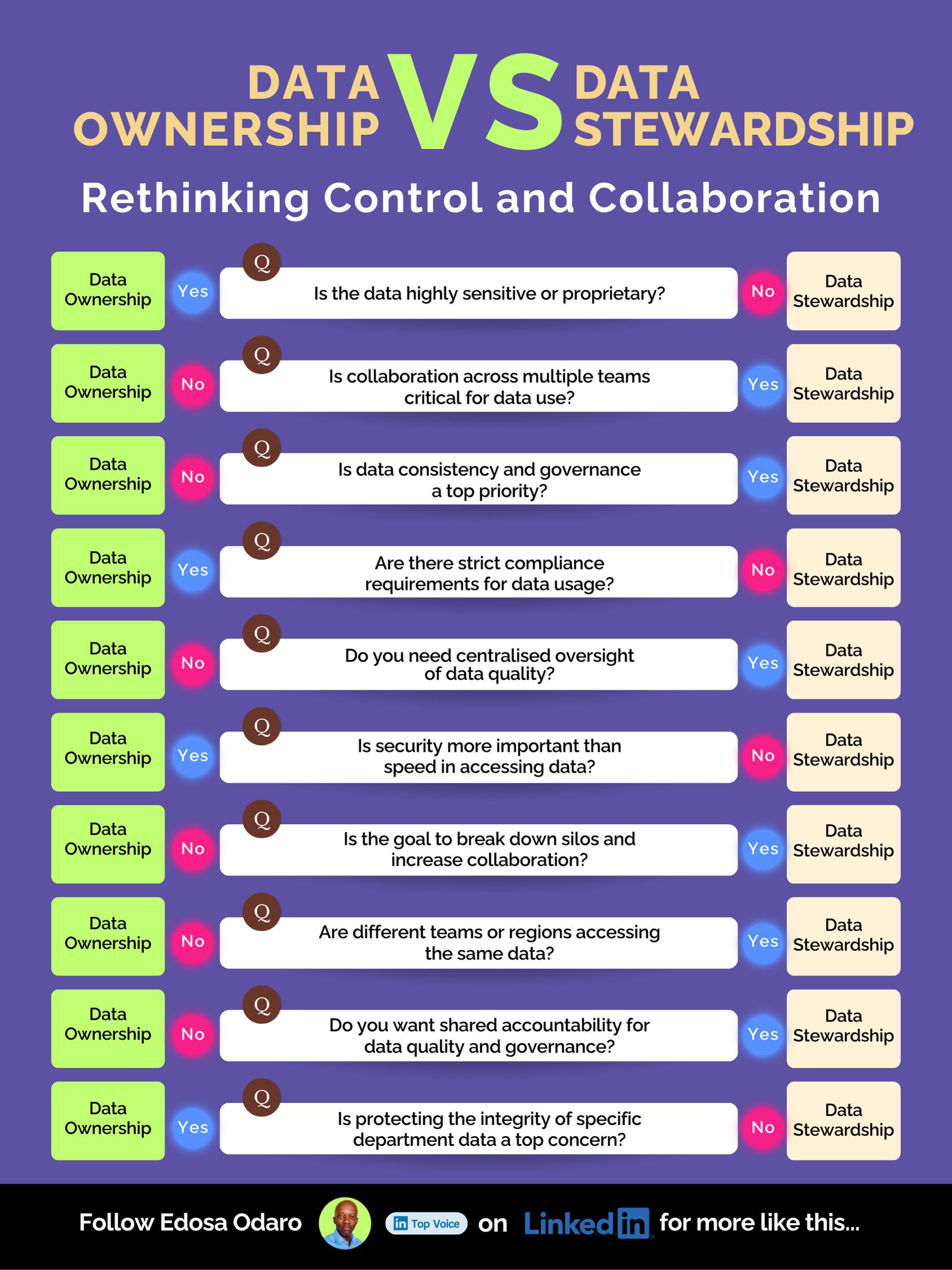 See the decision tree below for a detailed breakdown on choosing between data ownership and stewardship.